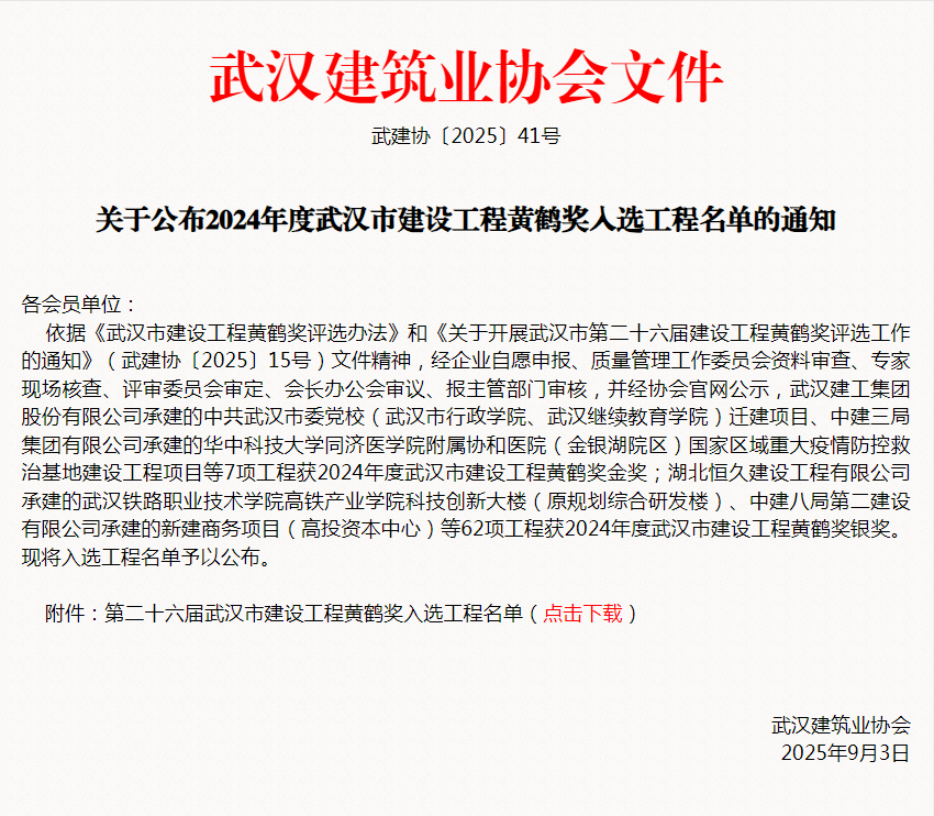 • 2025-09-10再添8項!湖北省建工第五建設有限公司榮譽持續刷新[]